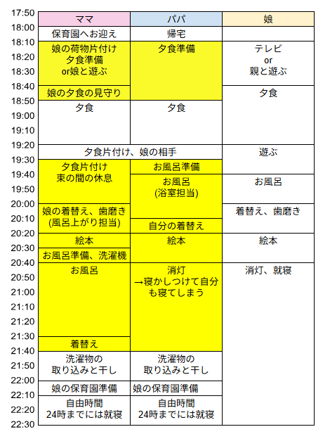 黄色の部分は、ママとパパで毎日交代して担当しています。